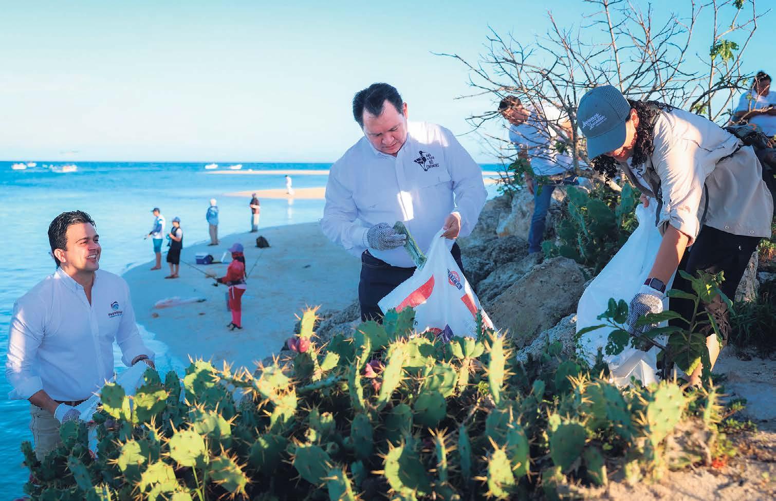 Joaquín Díaz Mena participó en la limpieza simultánea de playas, donde se retiraron más de cinco toneladas de residuos sólidos con el apoyo de dos mil 023 voluntarios P.4