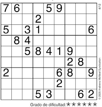 Complete el recuadro de tal manera que cada fila, columna y cuadro de 3x3 tengan los números del 1 al 9.