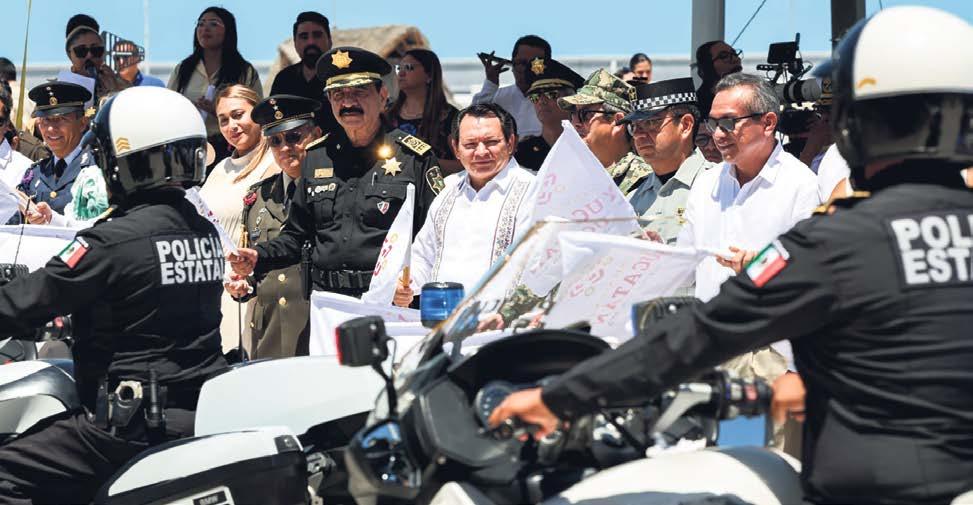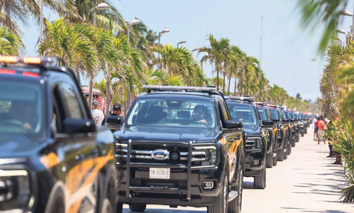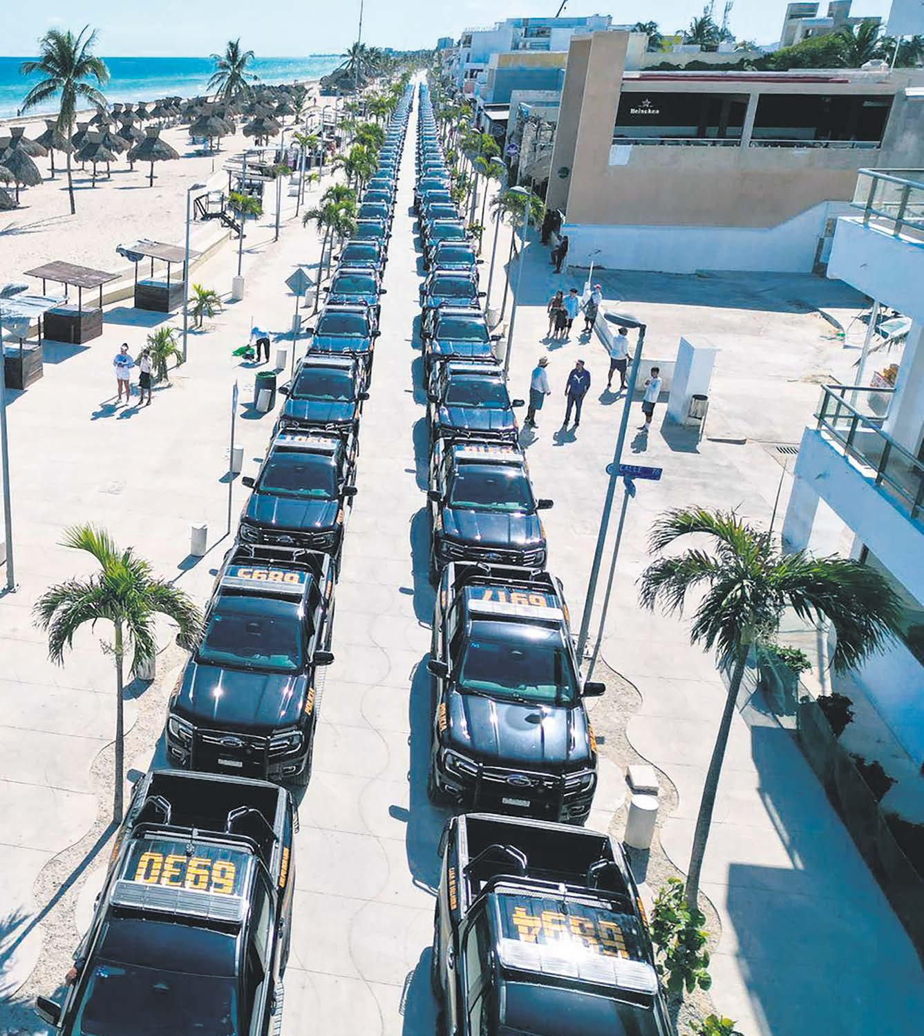 la seguridad de las familias yucatecas y de quienes nos visitan. Las unidades entregadas incluyen 43 camionetas SUV Ford Explorer 2025, 200 Ford Ranger 4x4 modelo 2024, 24 camionetas Ford F-150, 29 motocicletas Suzuki y BMW adap-