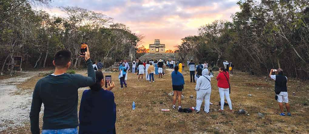 EQUINOCCIO. Decenas de personas acudieron a la zona arqueológica de Dzibilchaltún, donde pudieron disfrutar del fenómeno arqueoastronómico de primavera, pese a las nubes que aparecieron durante la salida del sol . En Chichén Itzá esperan hoy a 22 mil personas. P. 6