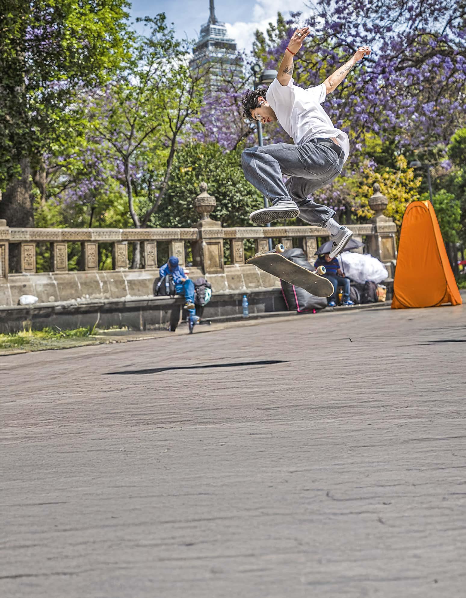 “Aquí en Bellas Artes puedes llegar solo y si los demás skaters te empiezan a ver, te respaldan y hasta aplauden con cada truco nuevo que logras”, admitió.