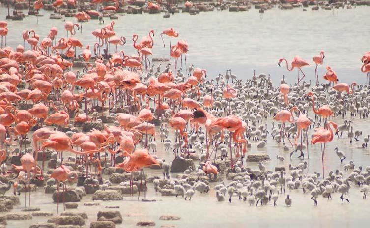 Señaló que en la Península de Yucatán la población de flamencos en época no reproductiva es de unos 12 mil ejemplares, mientras que en temporada de apareamiento es de hasta 24 mil individuos.