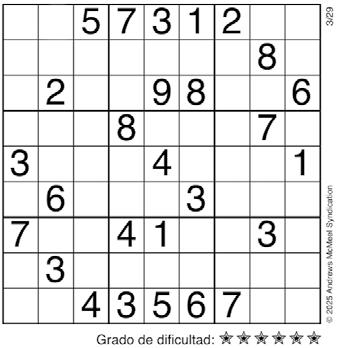 Complete el recuadro de tal manera que cada fila, columna y cuadro de 3x3 tengan los números del 1 al 9.