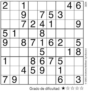 Complete el recuadro de tal manera que cada fila, columna y cuadro de 3x3 tengan los números del 1 al 9.