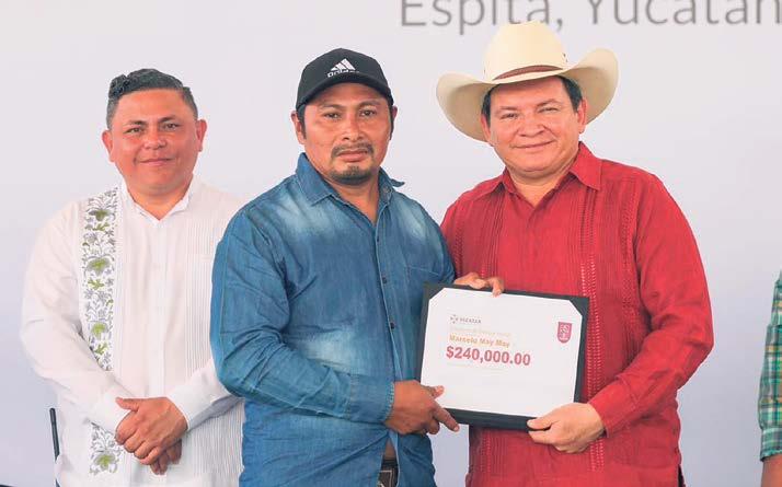 En beneficio de más de tres mil productoras y productores de ganado bovino, frutales, de hortalizas, pastos y forrajes, henequeneros y apicultores de más de 20 municipios de la entidad, el gobernador Joaquín Díaz Mena entregó a 119 Comités de Caminos Renacimiento apoyo por 20 millones de pesos para la rehabilitación de 251 kilómetros de vías rurales.