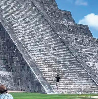 Otro turista sube a la pirámide en Chichén
