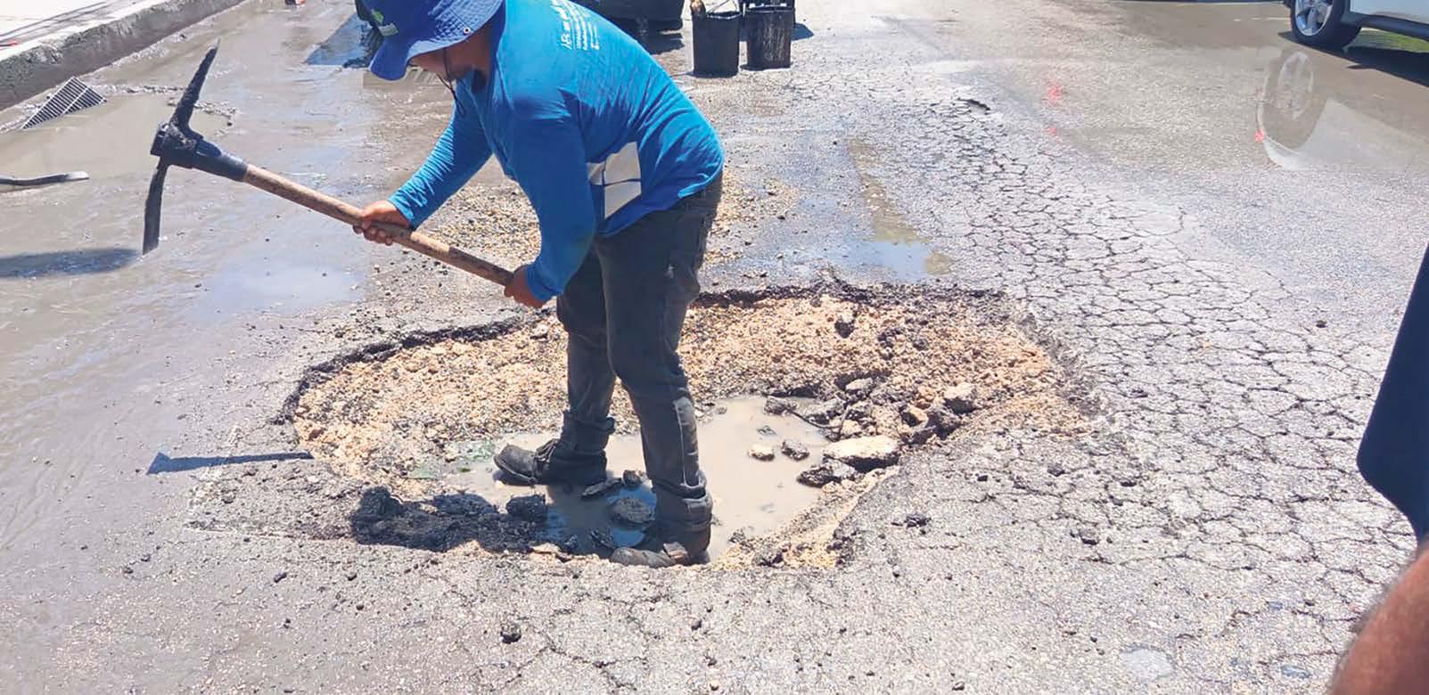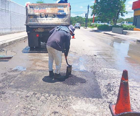 OPORTUNA. El Ayuntamiento de Mérida atendió un mega bache en Nueva Sambulá; reparan carpeta asfáltica dañada por lluvias para garantizar seguridad vial y mejorar tránsito en la zona afectada P.5