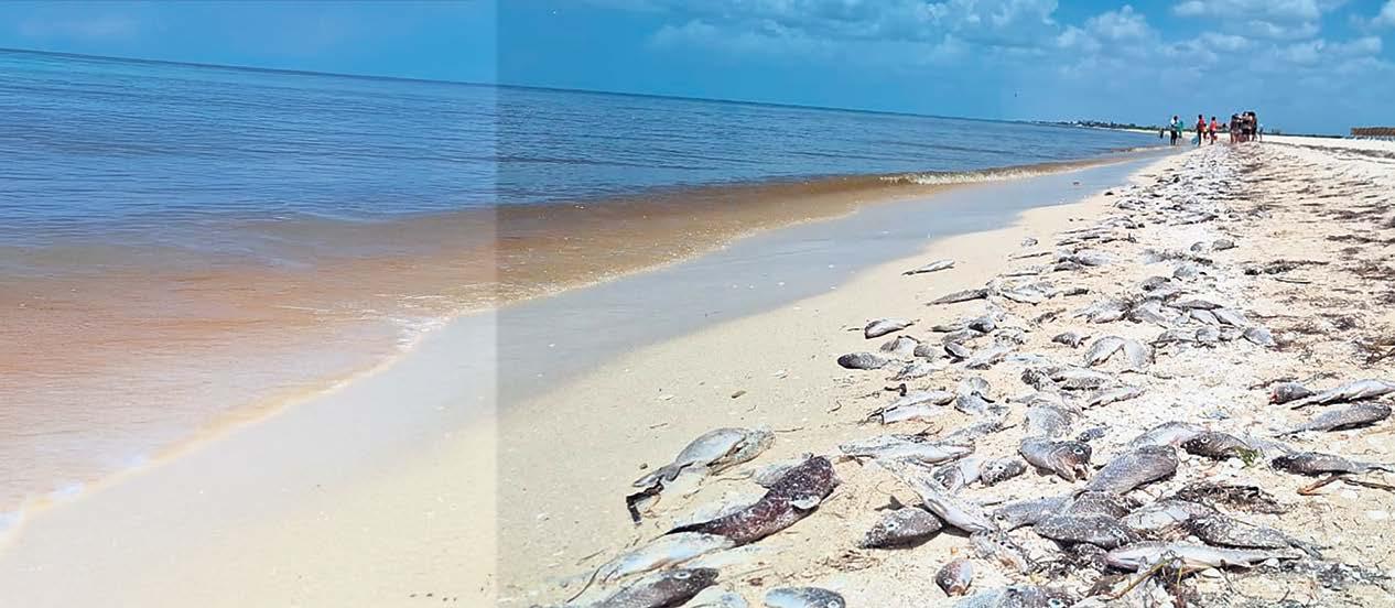 IMPACTO. El evento está causando el recale de cientos de peces y otras especies marinas en las playas de Progreso, Chelem y Chuburná.