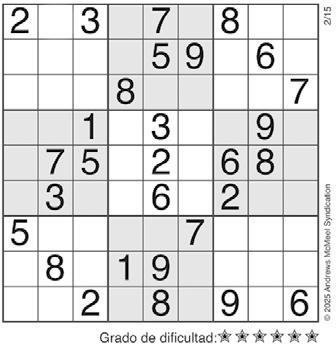 Complete el recuadro de tal manera que cada fila, columna y cuadro de 3x3 tengan los números del 1 al 9.