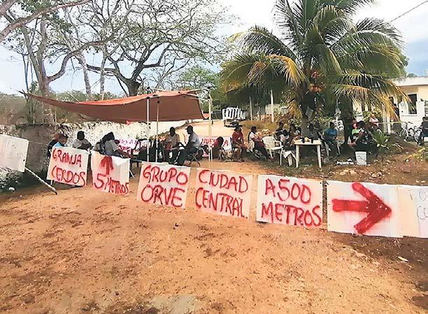 PROTESTA. Organizaciones y pueblos mayas exigen sanciones contra industrias que dañan el agua de cenotes y pozos. la presencia de bacterias fecales en cenotes, pozos y agua potable de comunidades como Kinchil, Maxcanú, Kopomá y Santa María Chi. De igual forma, un estudio reciente de la Universidad John Hopkins, una de las instituciones de salud pública más prestigiosas del mundo, confirmó mediante un marcador genético denominado Pig-2-Bac que la contaminación de pozos en Kinchil y de aguas superfi-