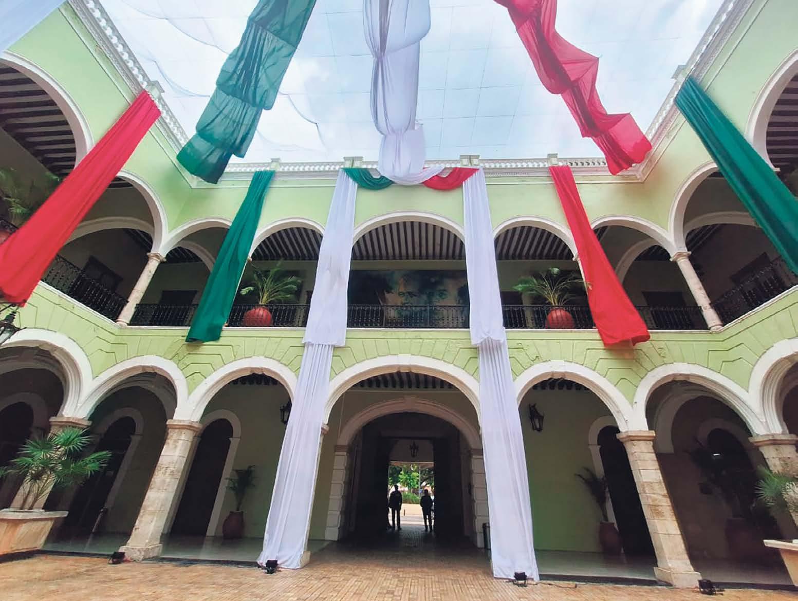 ESPÍRITU MEXICANO. El patio central del Palacio de Gobierno del Estado luce telas tricolores mientras vendedores del Centro Histórico ofrecen banderas, sombreros y rehiletes para celebrar las fiestas patrias P. 5