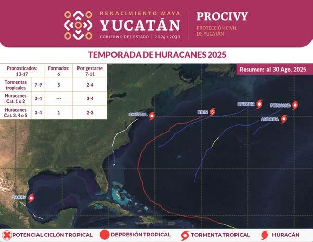 La Coordinación Estatal de Protección Civil (Procivy) advierte que septiembre concentra históricamente los fenómenos más intensos de la temporada de huracanes, por lo que están redoblando la vigilancia y las medidas preventivas.