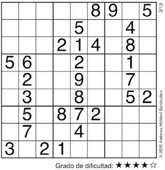 Complete el recuadro de tal manera que cada fila, columna y cuadro de 3x3 tengan los números del 1 al 9.