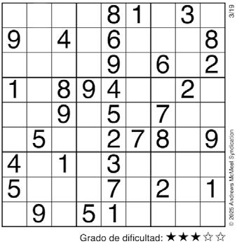 Complete el recuadro de tal manera que cada fila, columna y cuadro de 3x3 tengan los números del 1 al 9.