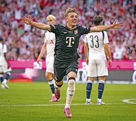 A seis días de enfrentarse al París SG por la Supercopa de Europa en Udine (Italia), el Tottenham perdió ante el Bayern Múnich por 4-0 este jueves en su sexto y último partido de pretemporada. Campeón de la Europa League en mayo, el Tottenham se vio superado en el primer tiempo y se fue a vestuarios en desventaja después de un gol de su exdelantero Harry Kane. Después de la pausa, Kingsley Coman amplió la cuenta. Lennart Karl y Jonah Kusi-Asare sellaron la goleada en Allianz Arena. / AFP