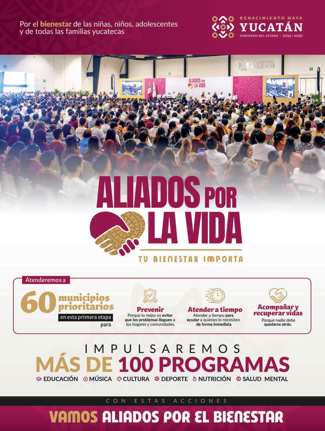 Con el apoyo de la presidenta Claudia Sheinbaum, el Gobernador de Yucatán, Joaquín Díaz Mena, presentó el programa Aliados por la Vida, el cual consiste en atender el problema de consumo de drogas, prevención del delito y la salud mental de los yucatecos. El mandatario dio a conocer que retomará el programa que puso en marcha la Presidenta en la Ciudad de México y que construirá 8 centros de renacimiento maya, como lo fueron los pilares en la capital, lugares para brindar atención a las zonas más desprotegidas, con respaldo del gobierno. ¿Será?