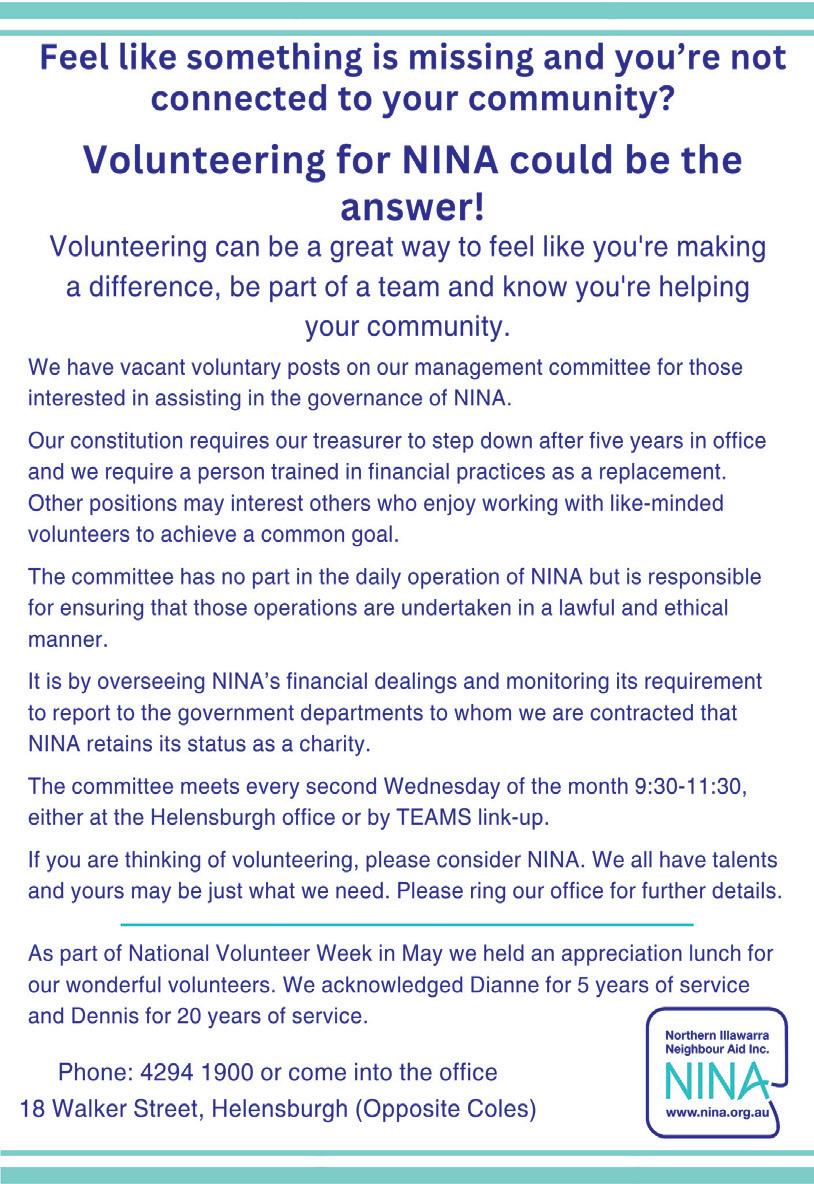 If you meet the above criteria & can see yourself in this important role, please email admin@helensburgh.rh.com.au for the osition Description & more information.