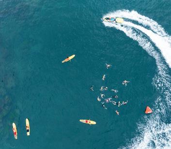 Lifesavers support the ocean swimmers.