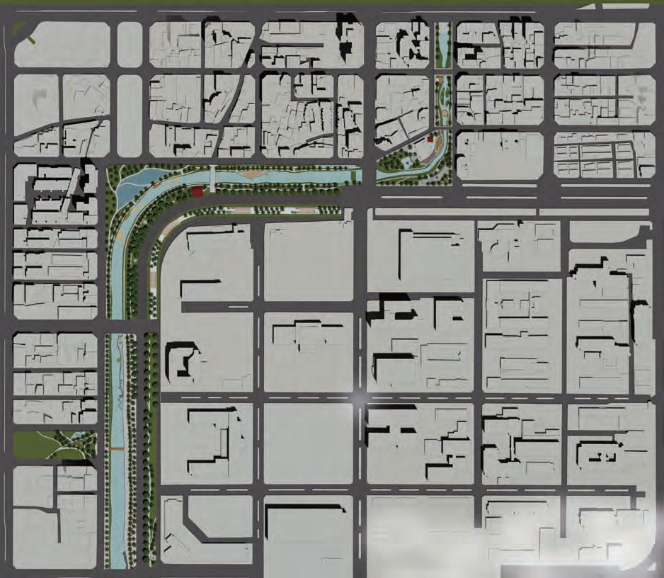 河川連結了民眾與水岸環境的情感 應該讓人更貼近河岸而非隔離所以將主軸定為水岸縫合