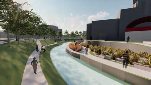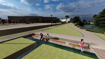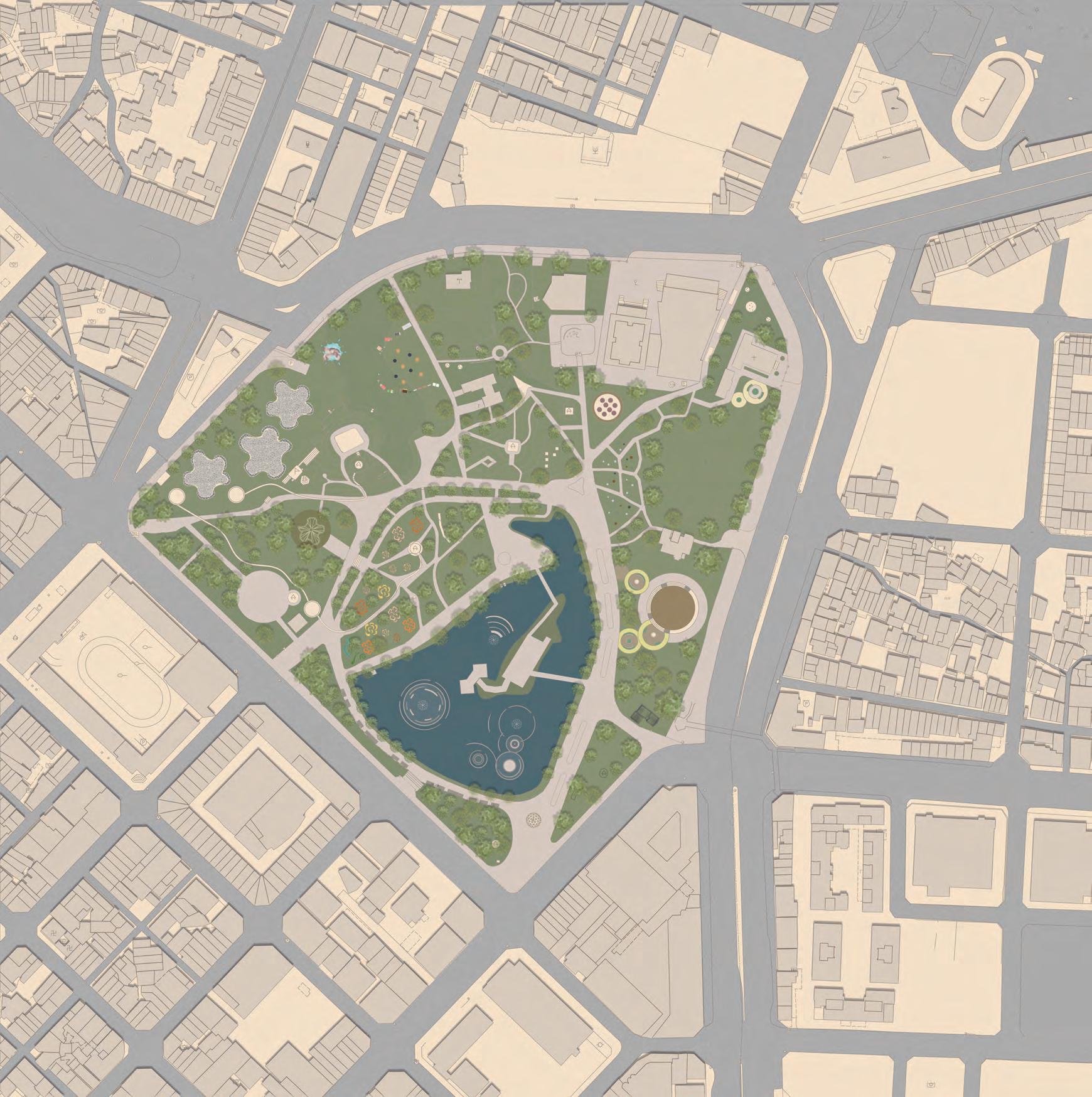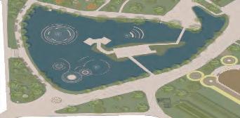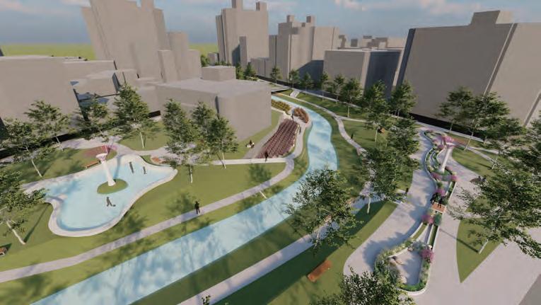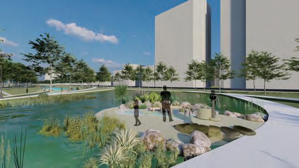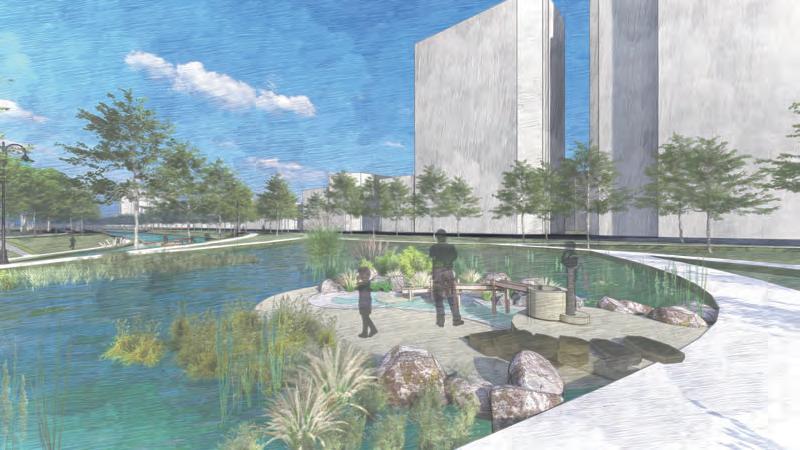 5 0 100 200(m) 增加親水區域與裝置,加強人與自然的互動 雨水花園監測塔 基地位於台中市南區 綠川中興大學周遭段落 川中興大學段空間規劃設計 動畫製作等 應該讓人更貼近河岸而非隔離所以將主軸定為水岸縫合 雨天時收集雨水 艷陽高照時灑水降溫 實時顯示儲存水量 以科技達成人與自然的互動 雨水花園/水稻田歷史地景區 雨水花園 溼地生態復育區 水稻田歷史地景區