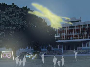 我們可以成为自己想要的任何模樣 最後展翅高歌 幻化成自己想成为的人 從空間分析找出使用者聚集點 與可操作開放空間並分類其性質 輔以動線分析規劃跨年當天之 活動據點分布與出入動線