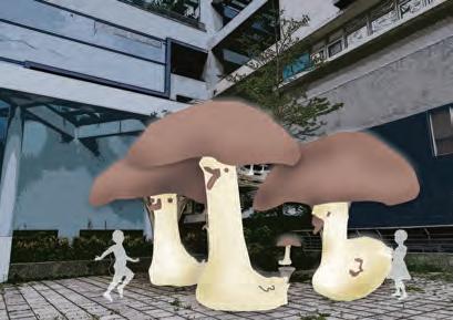 以校園原有的香菇裝置藝術 結合主題鵝的概念製作新的地景