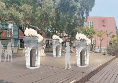 在學生餐廳旁設置飲料杯造型的地景藝術
