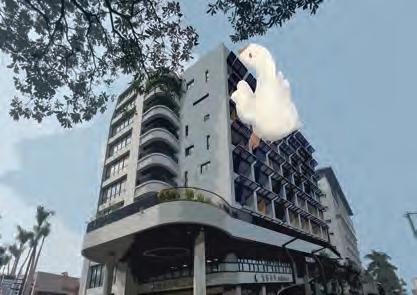 結合校園原有方型堆疊裝置藝術設置堆疊的鵝
