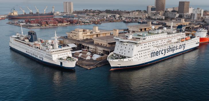 Image: The Africa Mercy and the Global Mercy together in Dakar, Senegal.