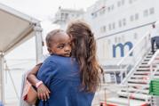 Image: Nurses wave flags as the Global Mercy floating hospital arrives back in Sierra Leone.