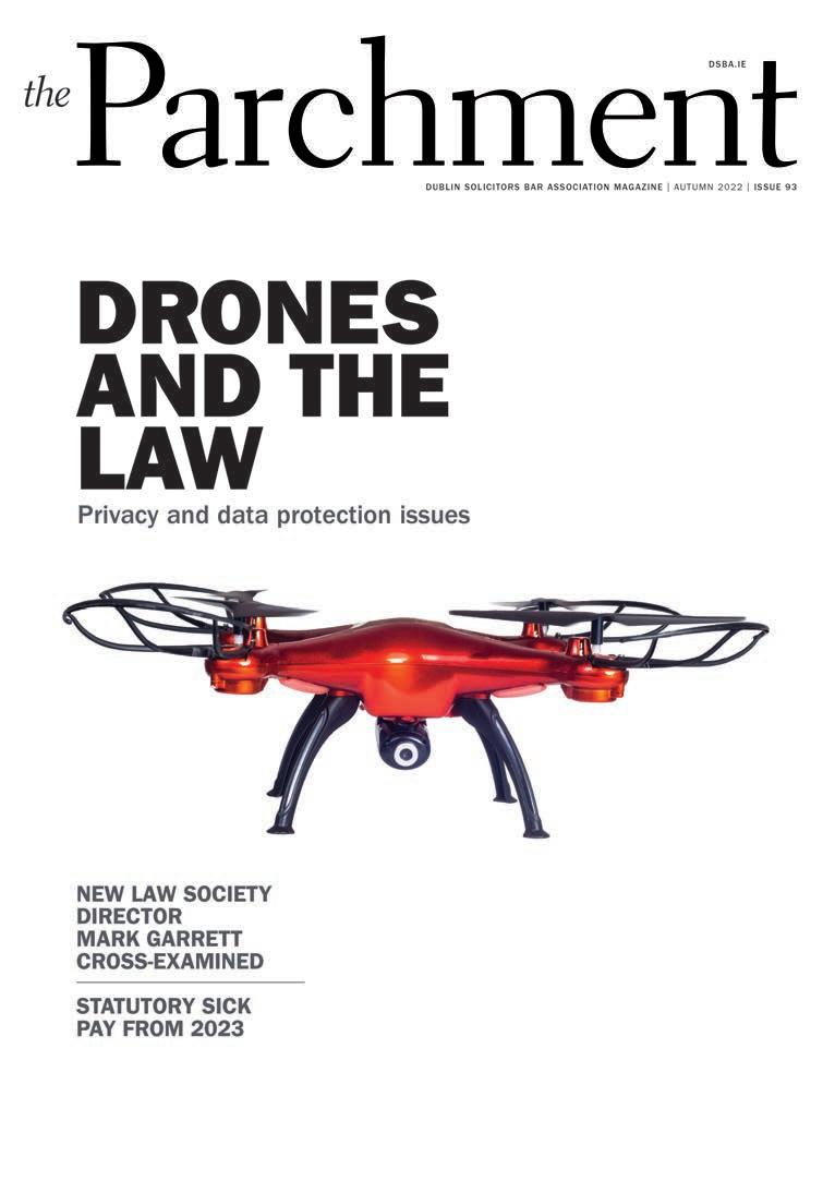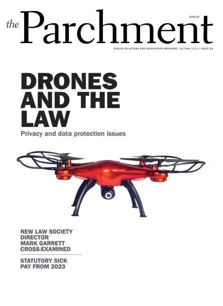 Parchmentthe DUBLIN SOLICITORS BAR ASSOCIATION MAGAZINE | AUTUMN 2022 | ISSUE 93 DSBA.IE Privacy and data protection issues DRONES AND THE LAW NEW LAW SOCIETY DIRECTOR MARK GARRETT CROSS-EXAMINED STATUTORY SICK PAY FROM 2023