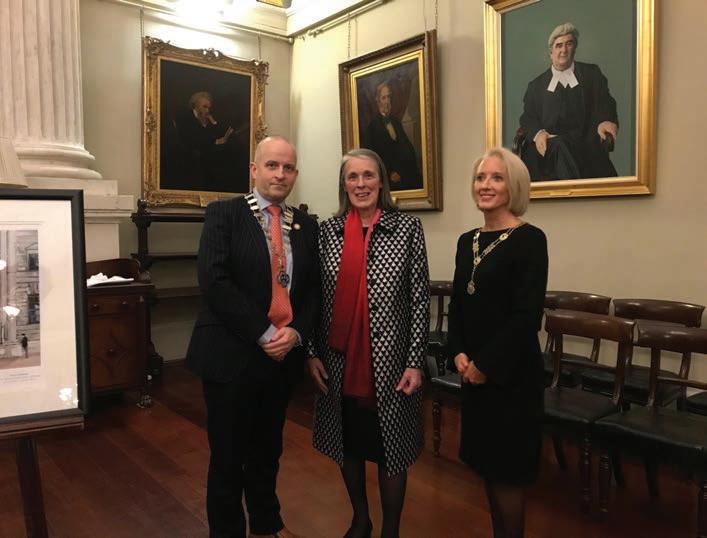 Tony O’Sullivan, President of the Dublin Solicitors’ Bar Association, was delighted to represent the DSBA, Irelands Largest Bar Association at the launch by Hanna Fine Art of the print of Stephen McClean’s original work - “ ntering the our Courts”. The painting marks the centenary of the Sex Dis ualification (Removal) ct 1 1 , which enabled women to become barristers and solicitors. s Tony highlighted on the night the DSBA’s primary purpose is to be the voice of solicitors, driving excellence in the solicitor’s profession and safeguarding the rule of law. key element of this is the promotion of gender equality, diversity and inclusion. In addition to celebrating 100 years of women in the law the sales will provide contributions to Breast Cancer Ireland and the Denham ellowship.