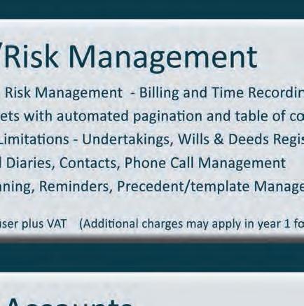 are now included in the bill. The DSBA will continue to promote the benefits of limited liability for sole traders which is not included in the new bill. We will, of course, keep our members informed and updated in relation to how the Act will impact on solicitor firms in practical terms, once the legislation is enacted.