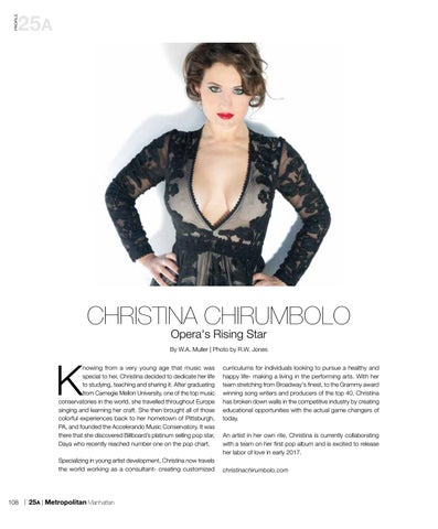curriculums for individuals looking to pursue a healthy and happy life- making a living in the performing arts. With her team stretching from Broadway's finest, to the Grammy award winning song writers and producers of the top 40, Christina has broken down walls in the competitive industry by creating educational opportunities with the actual game changers of today. An artist in her own rite, Christina is currently collaborating with a team on her first pop album and is excited to release her labor of love in early 2017. christinachirumbolo.com