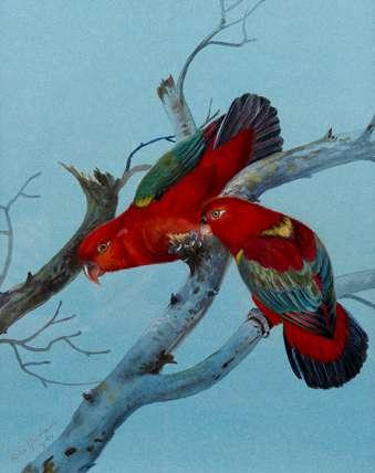 TWENTY-TWO PARROTS AND PARAKEETS IN SIX FRAMES, INCLUDING THE MALLEE RINGNECK, PAPUAN KING, ELECTUS AND ROSELLA PARROTS each signed and dated Philip Rickman 1969 each watercolour and gouache on blue paper