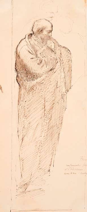 The present pen and ink drawing is after a drawing by Raphael in the Accademia, Venice. Since meeting and working together in Shoreham, Richmond and Palmer had long wished to visit Italy to improve their drawing by studying the art of the Renaissance masters. Starting out on October 4, 1837, Richmond, his wife Julia and their son Tommy together with Palmer and his wife embarked on an extended trip that lasted over two years, returning to England in late November 1839.