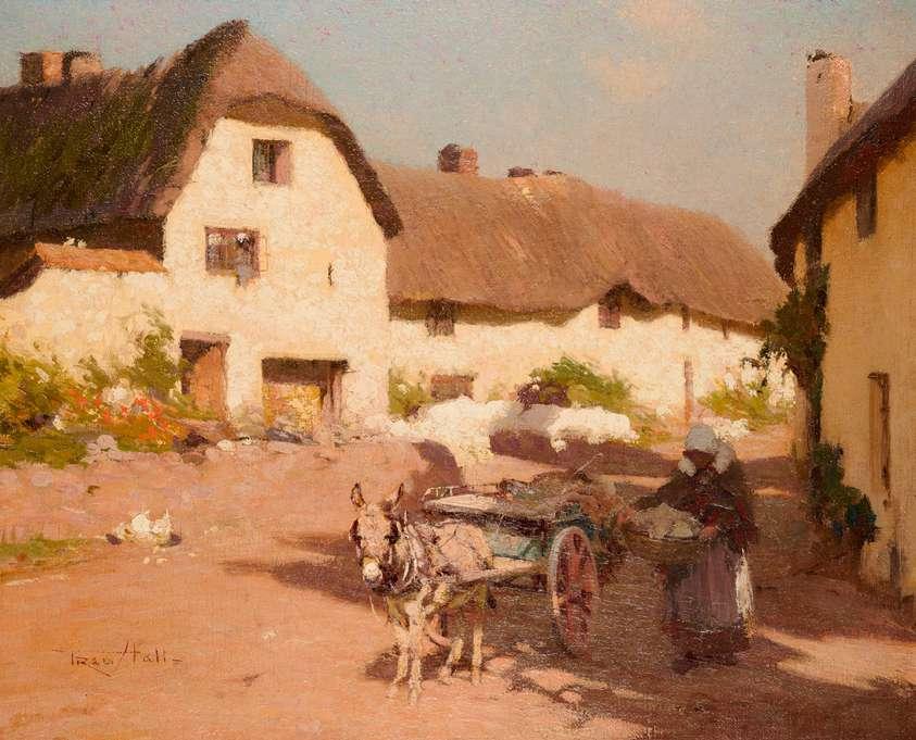 Throughout his life Richmond remained devoted to recording the landscape. Whether depicting the countryside around Shoreham or the Italian Campagna, his work is distinguished by a gentle, idyllic quality. His pencil and watercolour studies capture fleeting light and movement – clouds, sunsets and trees. The sale includes several such sketches, among them a pen and ink drawing of trees near Otford in Kent (lot 35) and an Italian study of A House Amongst Trees in the Roman Campagna (lot 34).
