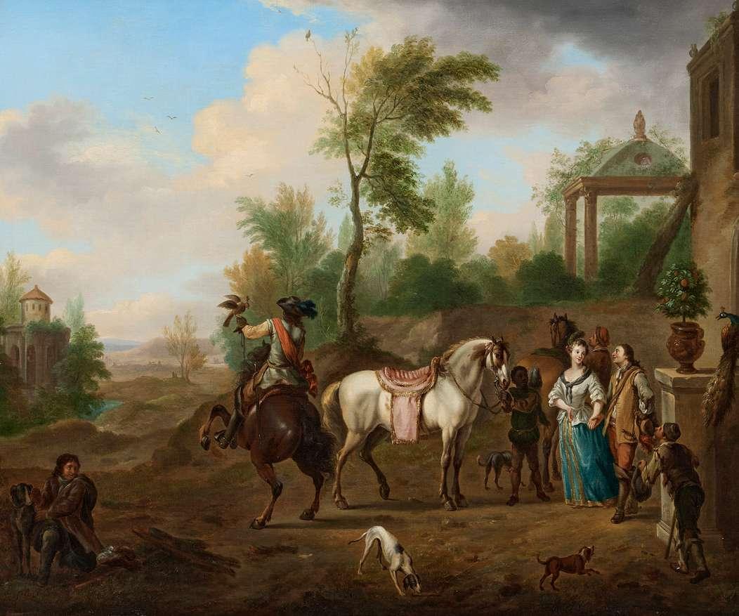 Gainsborough’s full-length portrait of Fischer was presented to King George IV by the Duke of Cumberland in 1809 and is in the Royal Collection. A friend of the German born composer and musician Johann Christian Fischer, Gainsborough recorded painting his portrait in 1774 in his Bath studio as a gesture of friendship rather than as a commission. In that year Fischer settled permanently in London and played frequently at Court becoming a member of the Queen’s Band. He wrote for and played the oboe and flute and was also an accomplished violin player.