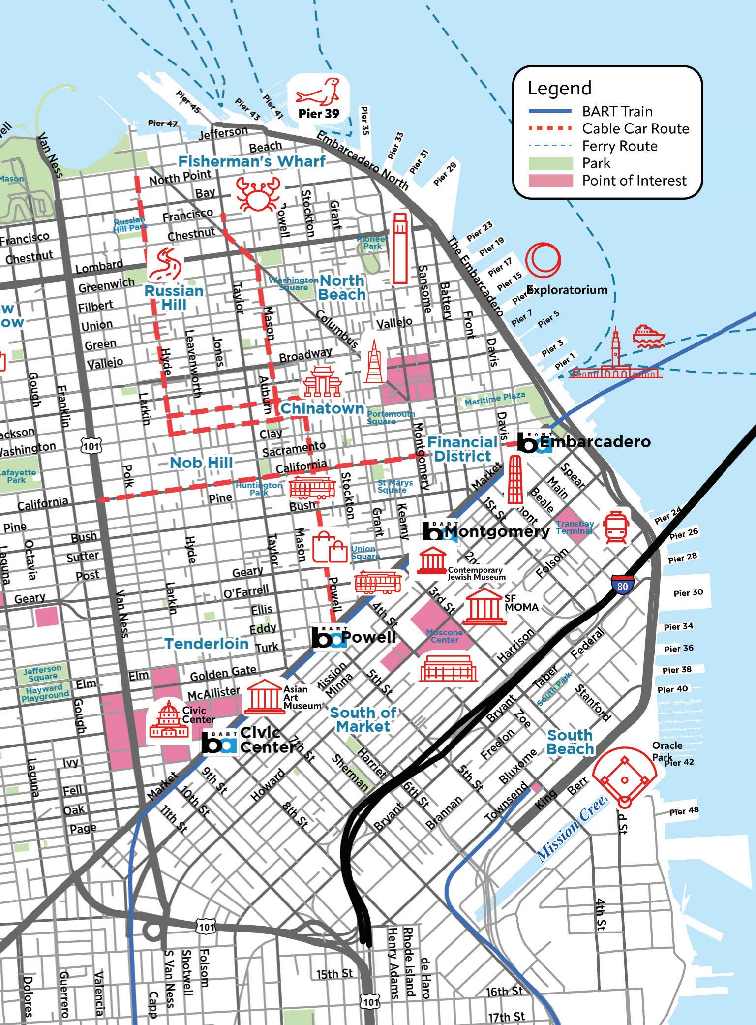 A stroll through historic Jackson Square — a downtown neighborhood filled with art galleries, quiet charm and some of the city’s most stylish shops and restaurants. Just a short walk away, Transamerica Redwood Park is a hidden gem.