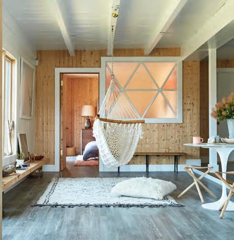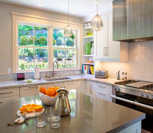 IN 2004 JENNY WOLFE and her husband, Nolan Zail, moved out of a rental in San Francisco and settled with their two young children into thei r fi rst home together in the hills above Mill Valley. “It had been renovated relatively recently,” Wolfe says. “But it had more of a cottage vibe — yellow on the outside with a white picket fence.” While the house was generously sized, the con figuration wasn’t stellar. “We had this tiny kitchen off n the corner,” Wolfe recalls. “And a beautiful view, with no real place to gather as a family and appreciate it.”