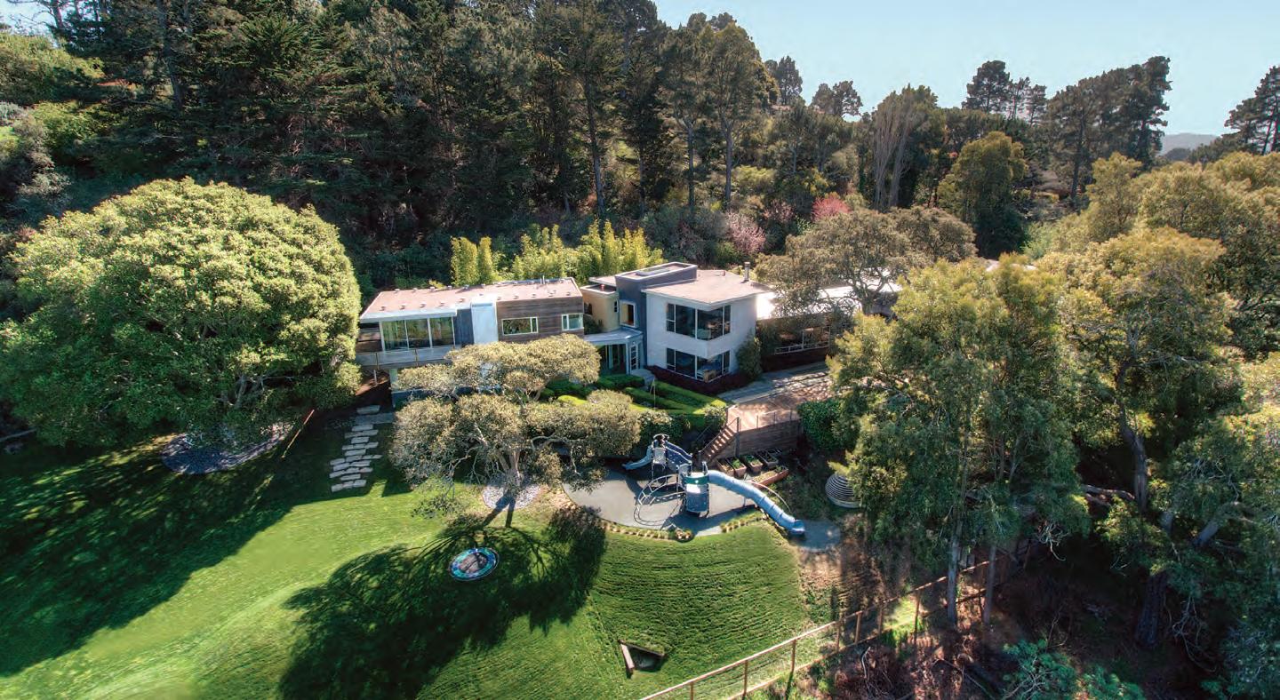 This stunning property is approximately 4,423 sq. ft. and is sited on half an acre. Features sought-after south-facing San Francisco Bay views, with sweeping views of Ring Mountain Open Space, San Francisco, and Sausalito. Four bedrooms plus an office, five baths, formal dining, three fireplaces. Beautifully remodeled kitchen with huge great room steps out to patio for al fresco dining and lawn for play. SF Bay views from Master suite with gorgeous newly remodeled bath. Located in the award-winning Reed School district, and offers a close-in commute to San Francisco. The house was the subject of a feature article in Marin Magazine.