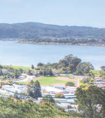 places, via Mill Valley’s Strawberry Cove, just east of today’s Richardson Bridge. Van Dieman lists several factors to back that up. First, Drake was a skilled navigator who, with the possible aid of captured Spanish coastal charts, surely could have located the three-mile-wide entrance to San Francisco Bay. Second, the Golden Hinde ’s draft (hull clearance) of 13 feet would have made it di fficult and dangerous to enter the shallow waters of Drakes Estero. (To anyone countering that Strawberry Cove is equally shallow, he’ll cite depth charts showing that a navigable deep natural channel leads directly into the cove.) Finally, a rather detailed map of Drake’s actual landing spot, reconstructed after his 1580 return to England, more closely resembles Strawberry Cove than Drakes Estero. In the above artwork by Marin’s Andrew Annenberg, the area across the middle-left is the former location of Golden Gate Baptist Seminary. For more of Duane Van Dieman’s landing site hypothesis, visit sfdrakefoundation.com. m