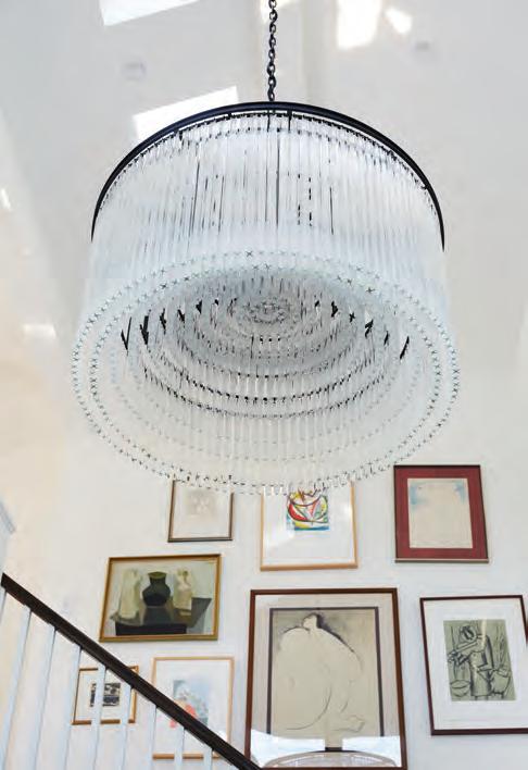 modular rug by Flor. The enormous chandelier above the stairwell is Restoration Hardware. “It was not an easy job to hang it,” says Audra.