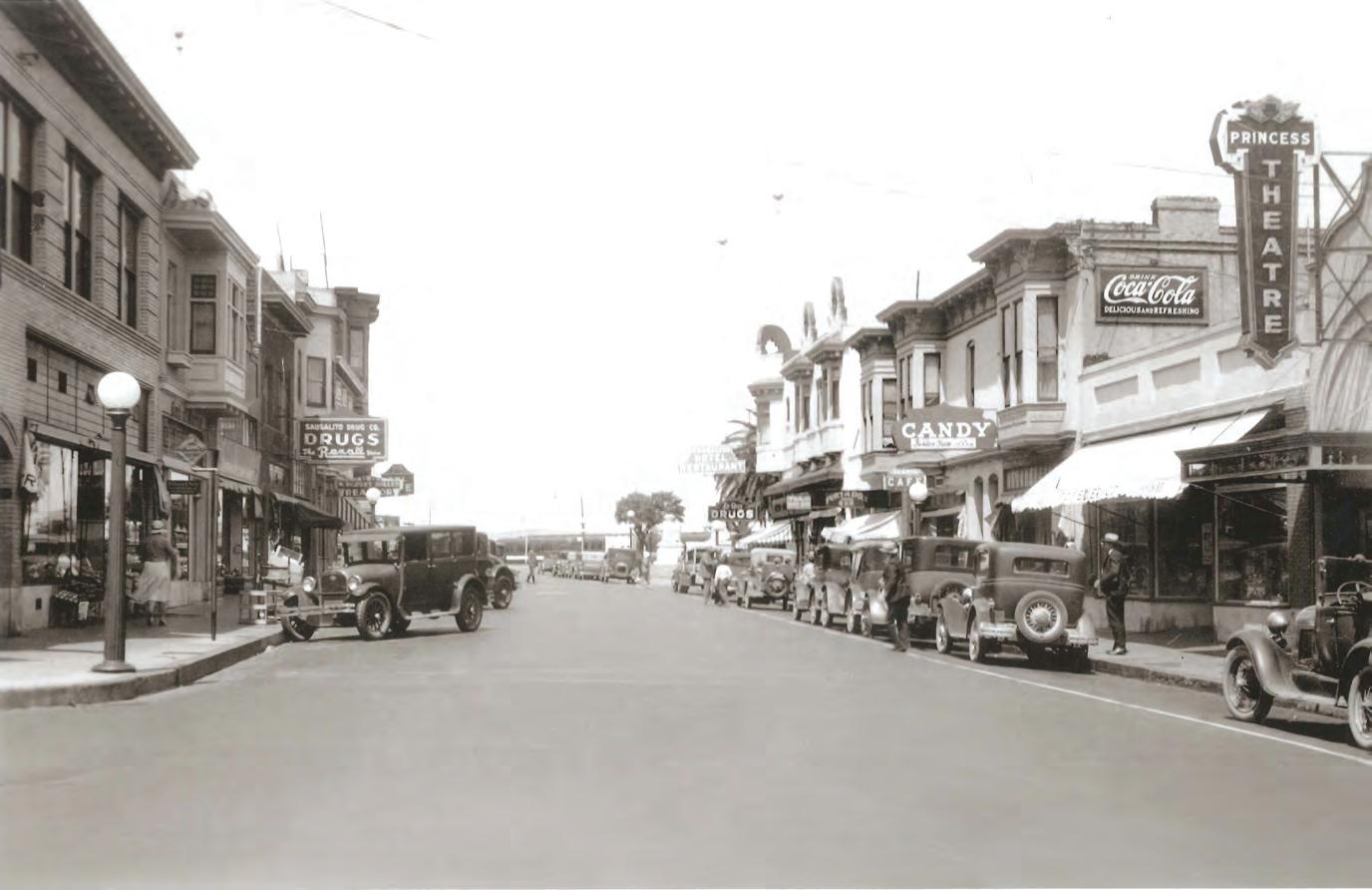 At right in the photo is the Princess Theatre, which was just beginning to show talkies.