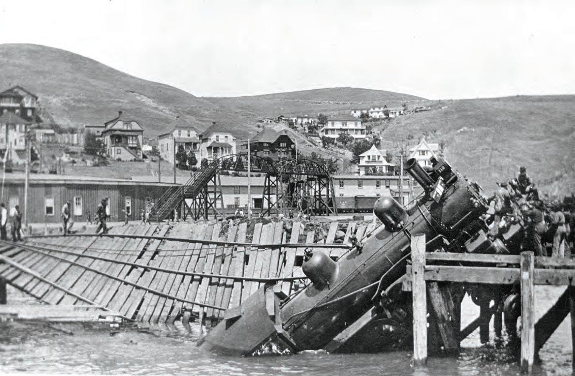 IT WAS A Monday, June 30th, in the unlucky year of 1913, while switching tracks on a wharf in the rail yards of Tiburon, that Northwestern Pacific Railroad’s Engine No. 112 suddenly dropped into 25 feet of water. The locomotive’s engineer, James Selvage, and firefighter Harry Sikes were trapped in the cab for 50 seconds before scrambling to safety. The wharf, pilings and all, was only six months old. So how could this happen? “Shipworms, they’re like waterborne termites — in Spanish they’re called toredos — had weakened the pilings in record time,” says Phil Cassou, head docent at the Railroad and Ferry Depot Museum in Tiburon. “It’s one of the best stories we tell here at the museum.” The nearly 70-ton engine, which had been in service only five years, was hoisted out of the salt water, dried off, repaired and put back to work within a week. After that, according to Cassou, the oil-burning steam locomotive’s career not only continued, but flourished. For nearly 40 more years, Engine No. 112 reliably transported passengers and freight throughout Marin and Sonoma counties and often went as far north as Eureka. In 1952, it was retired and restored, fi rst by the NWPR in Tiburon and then in 1962, after being barged across the bay, at Bethlehem Steel’s shipyard in San Francisco. After all this — decked out in a striking two-tone green coat of paint, with a silver smoke box, a mustard-yellow boiler jacket and a red cab roof — Engine No. 112 was a star attraction at the California State Railroad Museum in Old Town Sacramento for many years. Now it is believed to be parked in storage there. m
