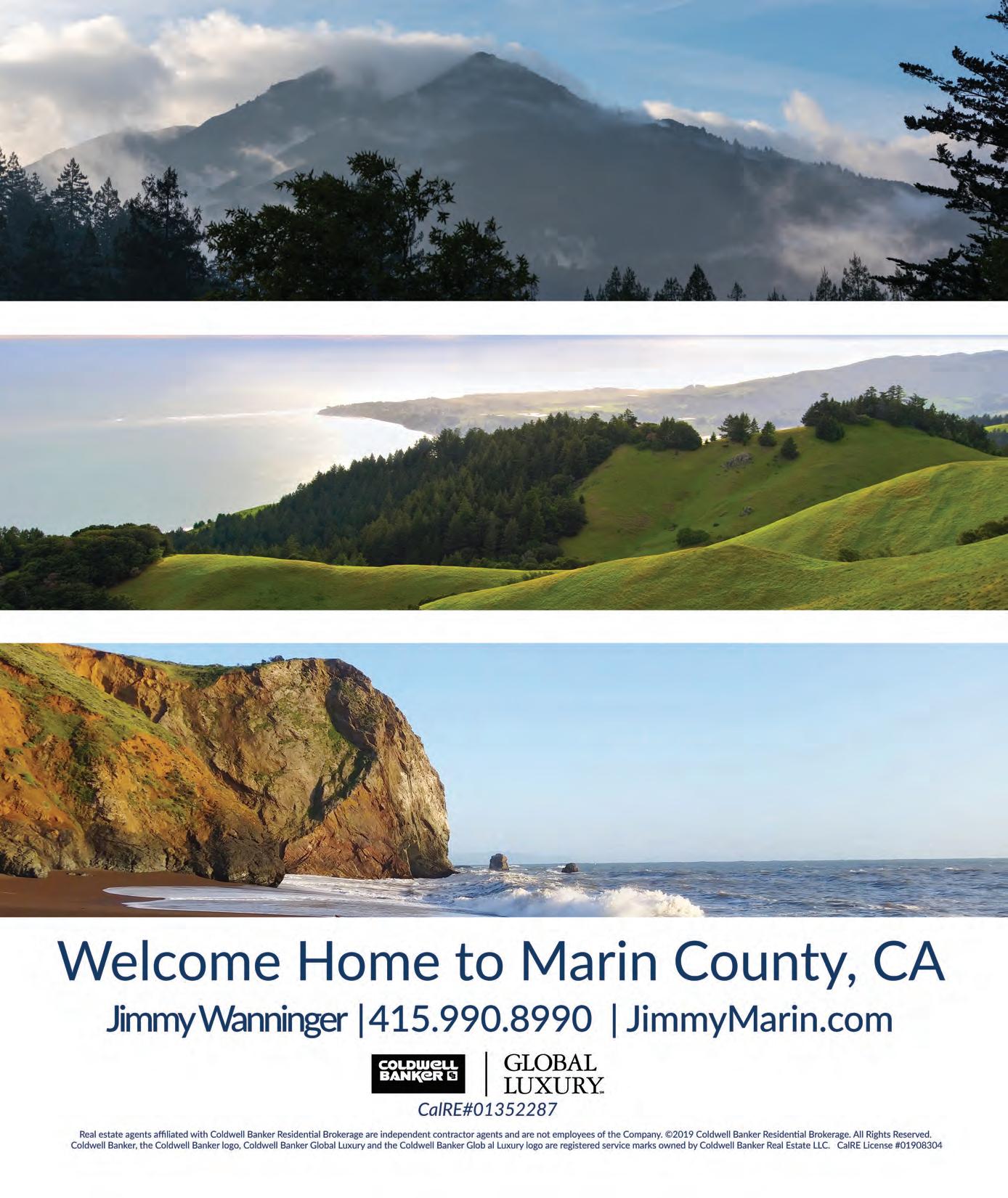 COLDWELL BANKER RESIDENTIAL BROKERAGE COLDWELLBANKERLUXURY.COM Mill Valley | $4,995,000 Legacy property in downtown Mill Valley. Behind stucco walls surrounding this 5br/4.5ba + bonus rm, is a grand mansion, hidden in plain sight. Kim Strub 415.218.4255 Tom Bolles 415.307.4036 CalRE#01402651 | CalRE#01866515 Belvedere | $4,250,000 Coastal contemporary 6br/5ba home, including detached studio w/full bath, extensively updated w/bay views and access to the beach and open water. Bill Johnson 415.925.3235 BillJohnson@cbnorcal.com CalRE#00688853 Mill Valley | $2,549,000 Stunning views meet updated rustic charm in this 4br/3ba home. Tania Reinhard 415.595.1699 taniareinhard@icloud.com CalRE#00959064