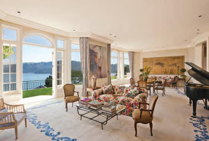 Magnificent residence, recently constructed, with gracious formal living and dining areas, impressive study, and remarkable 180 degree water views from Mt. Tam, through the Sausalito Harbor, the Golden Gate Bridge and San Francisco. Stylish entry level with stone entrance, beautiful kitchen/ family room with outdoor dining terrace and butler’s pantry, and a convenient home office with stone counters and computer workstations for two. Formal living room that opens to a large stone courtyard with fountain, a poolside media room, a private guest room and bath, and a spacious art room with a secret garden outside. Upstairs level has the private master suite with lavish bathroom, his and her closets/dressing areas and a master terrace with expansive views of the Bay. The children’s wing features three bedrooms, two baths and a second stone terrace. Wonderful resort-like outdoor living with over one-half acre of level lawns and gardens, a nature walk with secluded fountain and meditation garden, sunset patio with stone fireplace, and a sparkling pool with waterfall and spa. Six bedrooms, four and one-half baths with au pair suite and exercise gym… $17,500,000