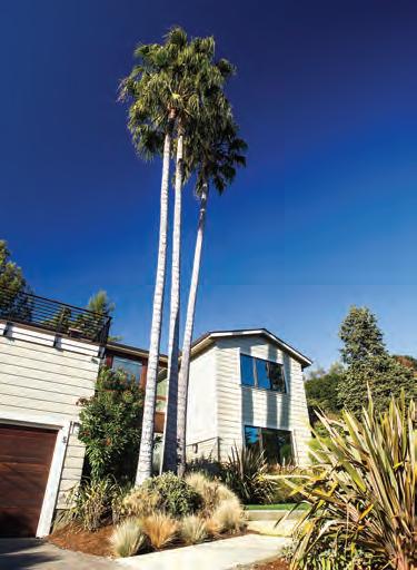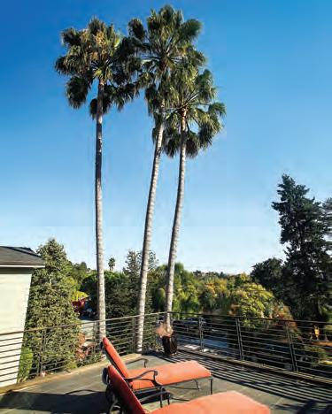 The Ures worked with r uby Living Design in m ill Valley to furnish their home. i nset: Palm trees stand at the home’s entrance.