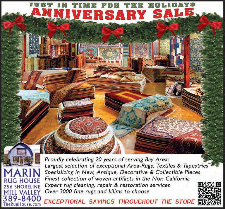 WE’VE GOT THE holiday spirit here at Marin Magazine this month. We start off our features section with an invitation to a special party. Readers get a chance to go behind the scenes and grab a seat at the table with the longtime executive chef of Kuleto’s, Robert Helstrom, and his wife, Denise. Join the holiday party and save the recipes we’ve included; they may help you prepare your own special meal. We’d love to see your success stories, so post your results to our Facebook page.
