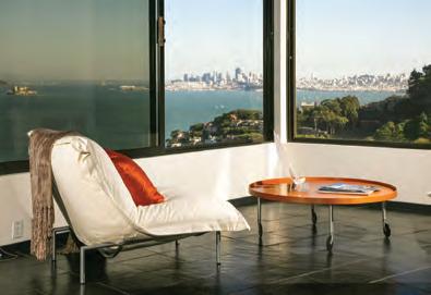 in love with it — the palm trees in front, the views of Mount Tam, the saltwater pool, the modern architecture.”